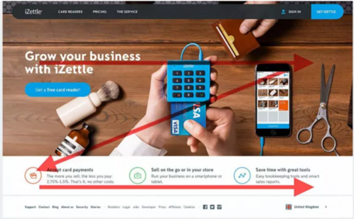 هر زمان که به یک تبلیغ نگاه می‌کنید، صفحه‌ای از یک مجله را ورق می‌زنید یا یک وب‌سایت را مرور می‌کنید، چشمان شما به‌طور طبیعی یک مسیر خاص را دنبال می‌کنند. دو مسیر اصلی وجود دارد که باید در نظر داشته باشید. اول، شکل Z را داریم. از بالا سمت چپ شروع می‌شود، به سمت راست می‌رود، به صورت مورب به سمت چپ فرو می‌رود و با حرکت دوباره به سمت راست، به پایان می‌رسد.